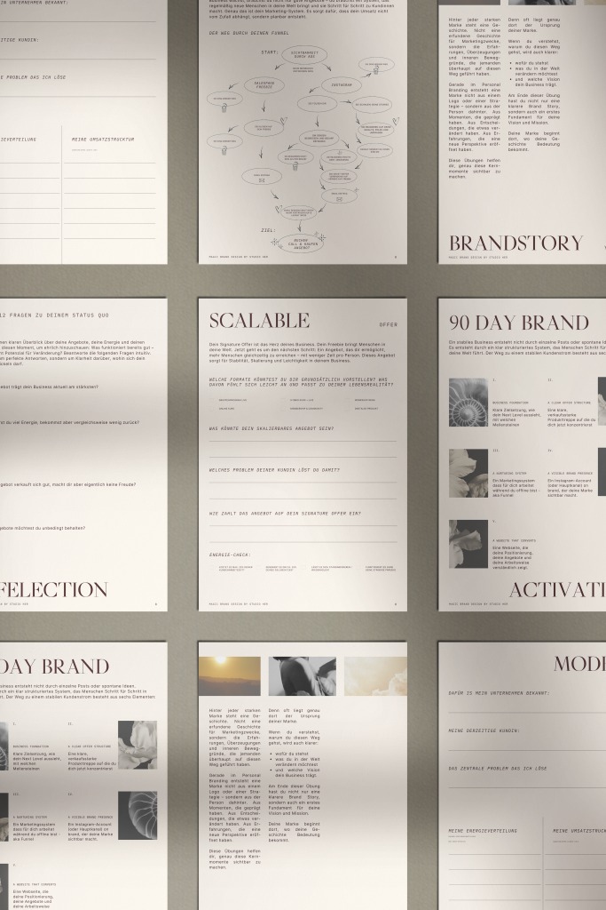 Dein Business bekommt Struktur. Keine Design-Insellösungen mehr, kein ständiges Neu-Erfinden. Dein Branding ist modular aufgebaut, mit klarer Logik und Skalierbarkeit. Du kannst wachsen, neue Angebote launchen und sichtbar werden – ohne jedes Mal bei Null zu starten.